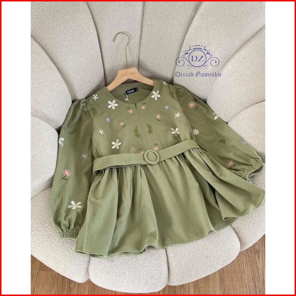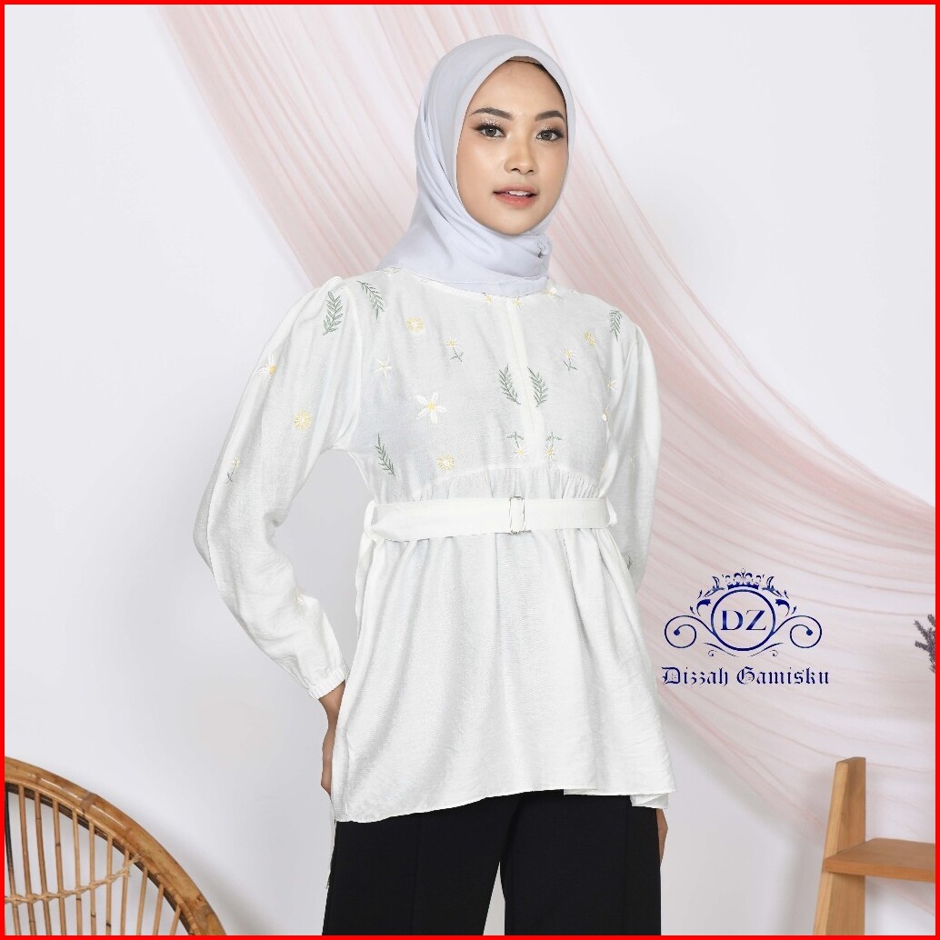Atasan Kemeja Reyna Blouse Atasan Crop Top Motif Border Terbaru By Dizzah Gamisku