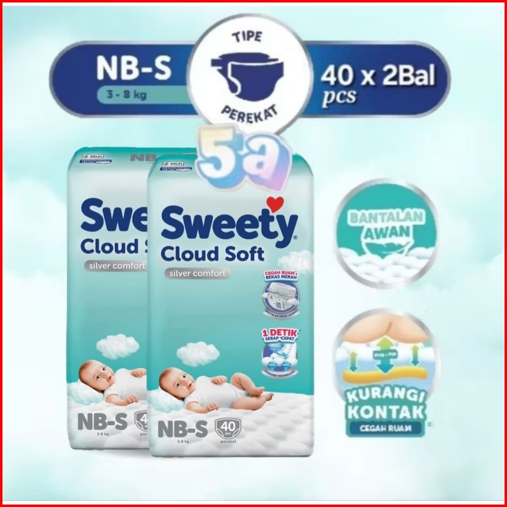 Sweety Silver Comfort Cloud Soft Newborn Nb-s40 Paket 2 Bal Popok Perekat
