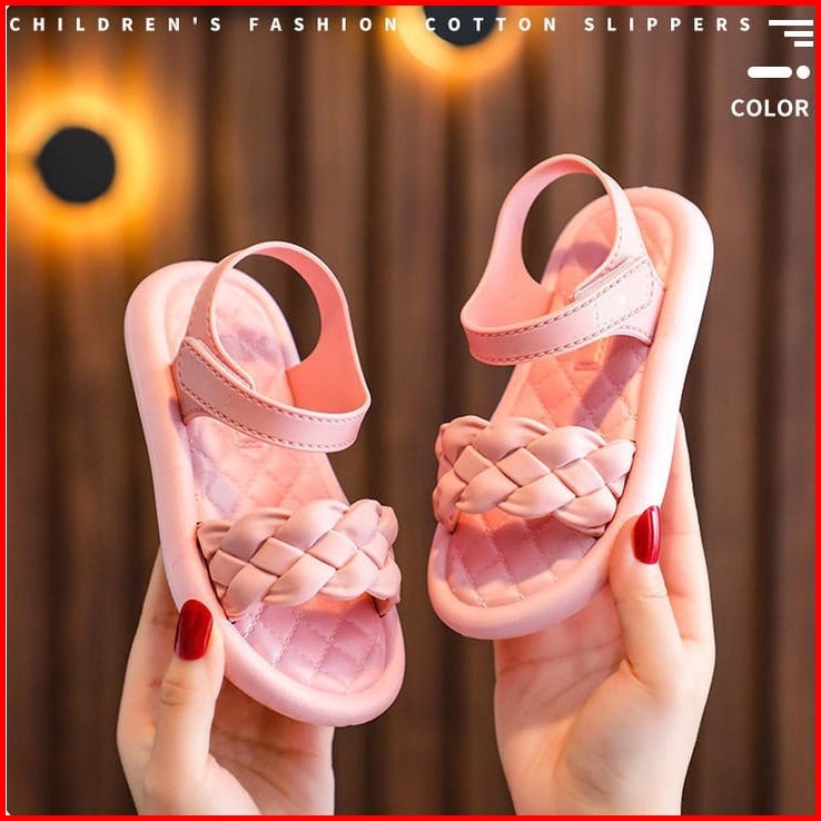 Sandal Jelly Anak Tali Perempuan Motif Kepang Bahan Karet Import Lentur Hys