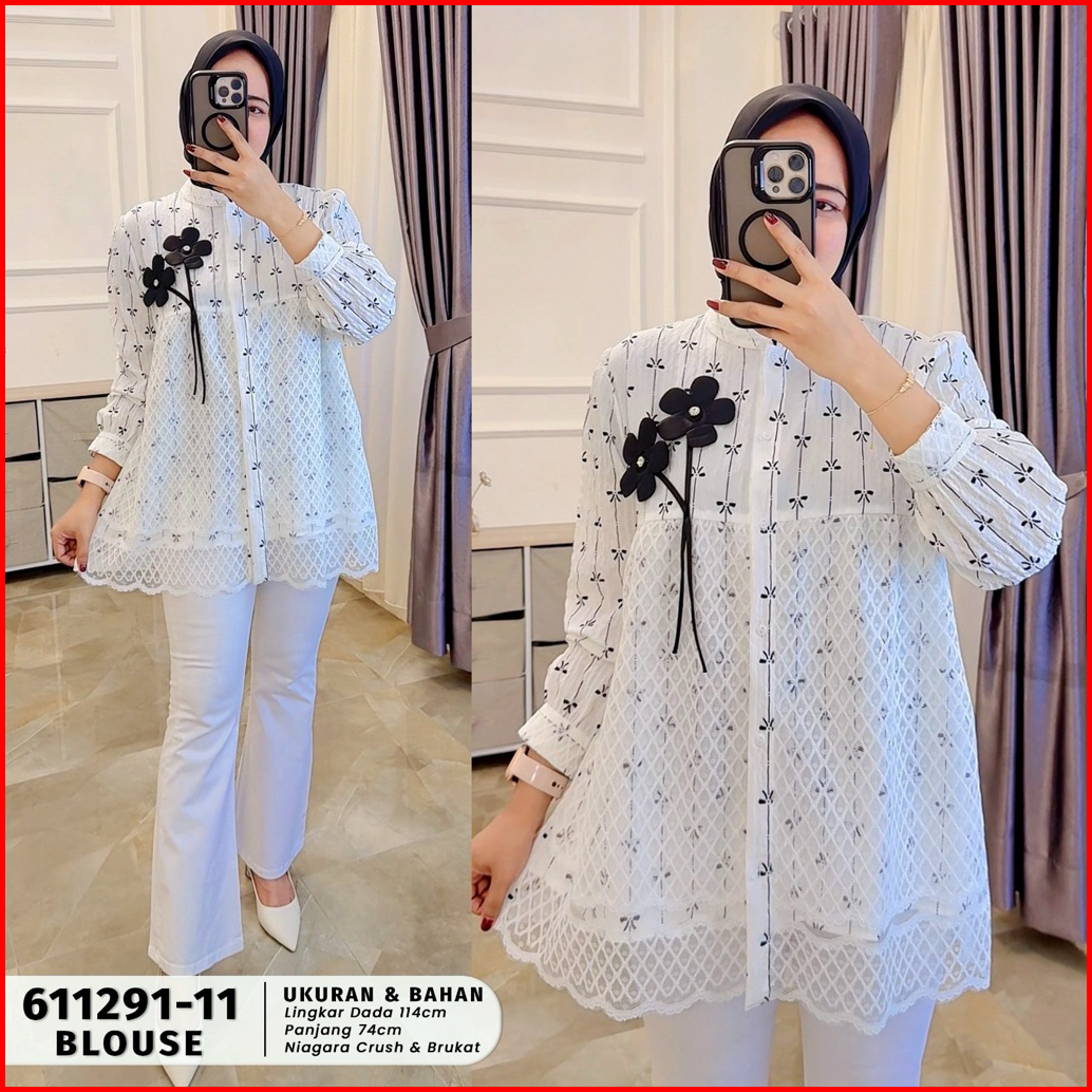 Blouse Atasan Panjang Baju Lengan Panjang Wanita Warna Putih Bahan Nyaman Model Kekinian