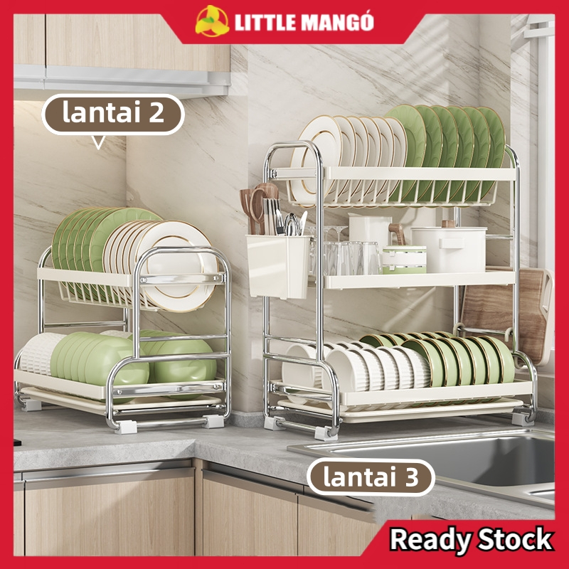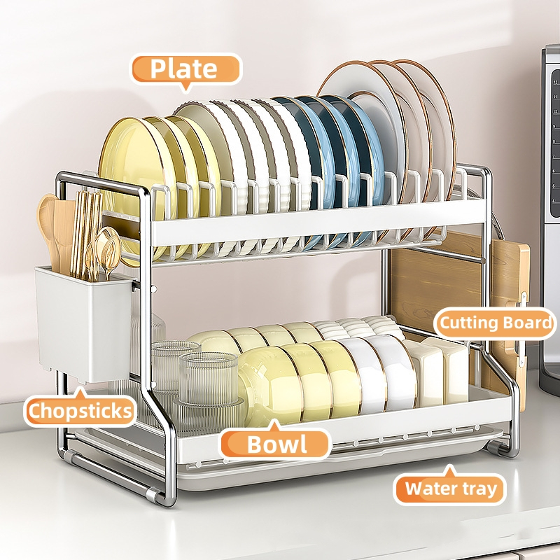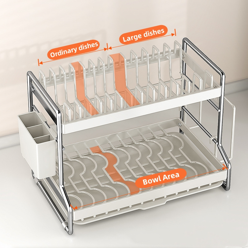 Stainless Steel Rak Piring Rak Dapur Cuci Piring Wastafel Rak Piring Penyimpanan Rak Peralatan Dapur Dengan Aksesoris 2 Susun Tingkat Peralatan Dapur/F67
