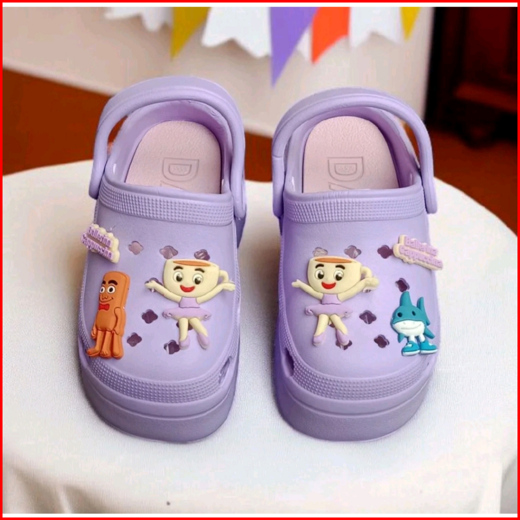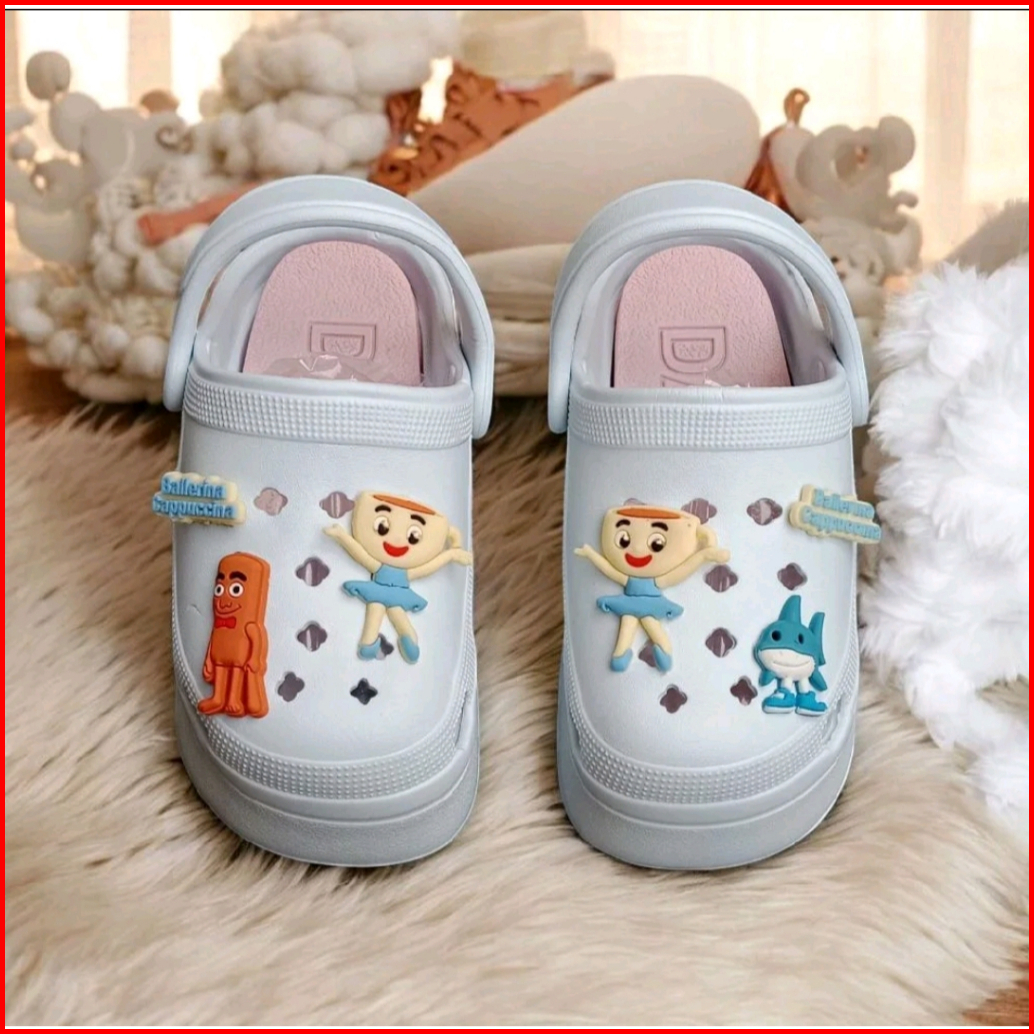 St Sandal Selop Anak Perempuan Model Baim Tali Belakang Anti Slip Karakter Ballerina Cappucina