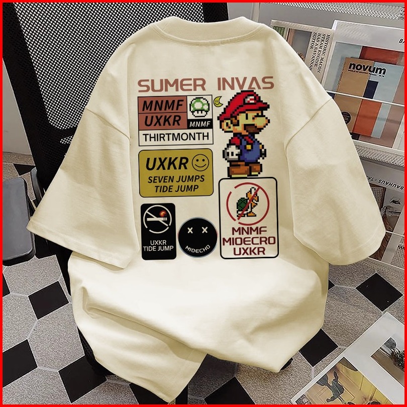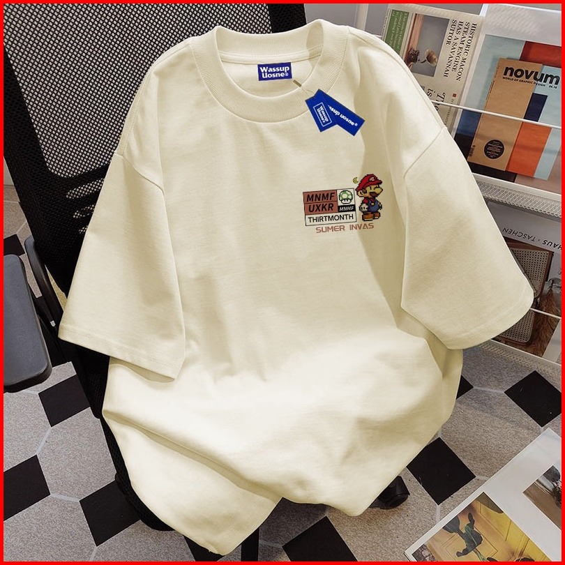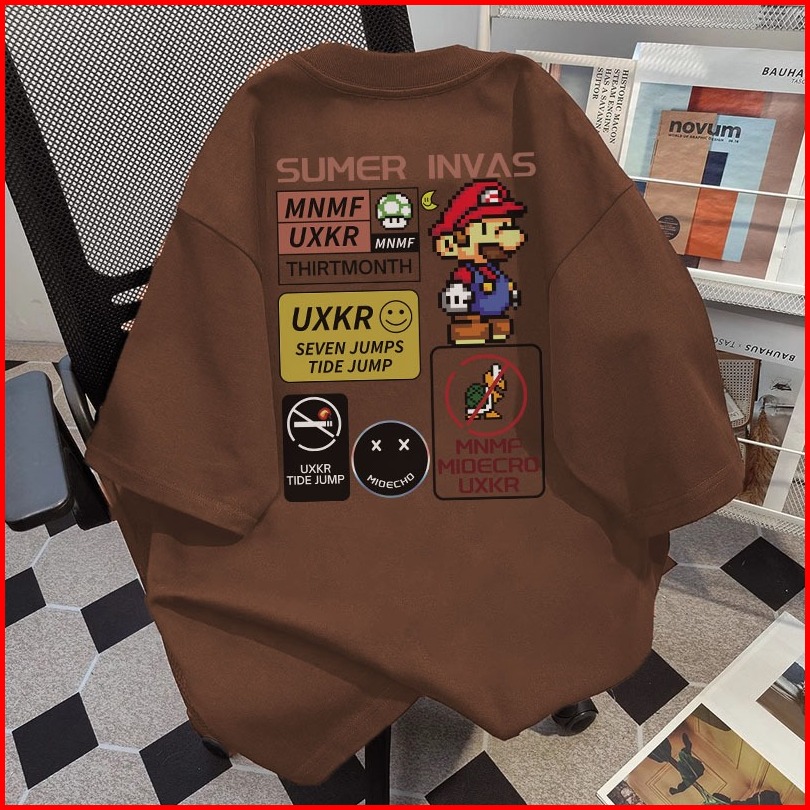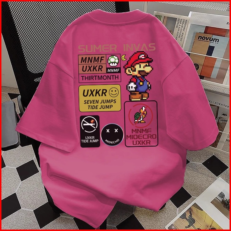 Mario Kartun Pencetakan Versi Korea Santai Baju Atasan Wanita Terbaru Kaos Pria Oversize Couple T Shirt Vintage 6.5