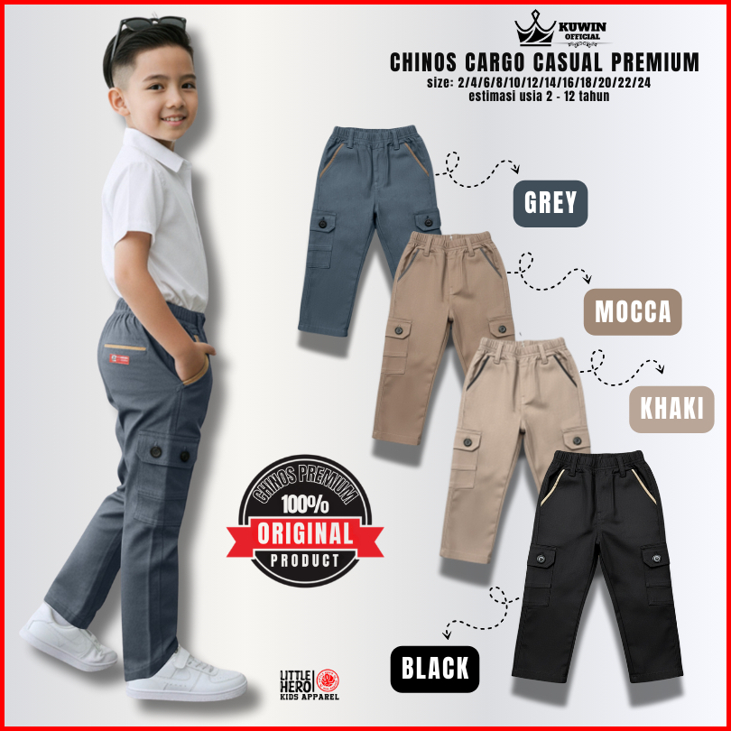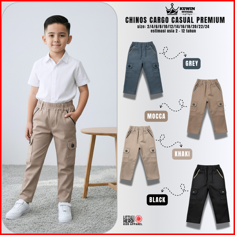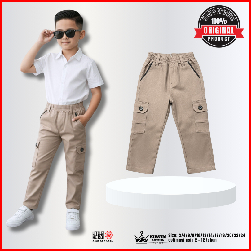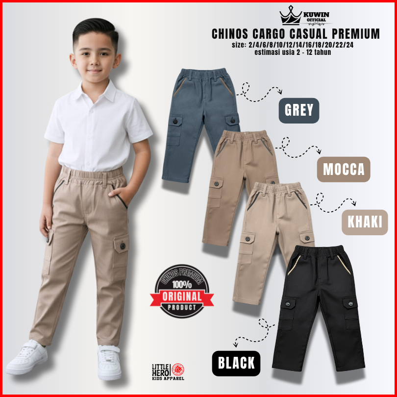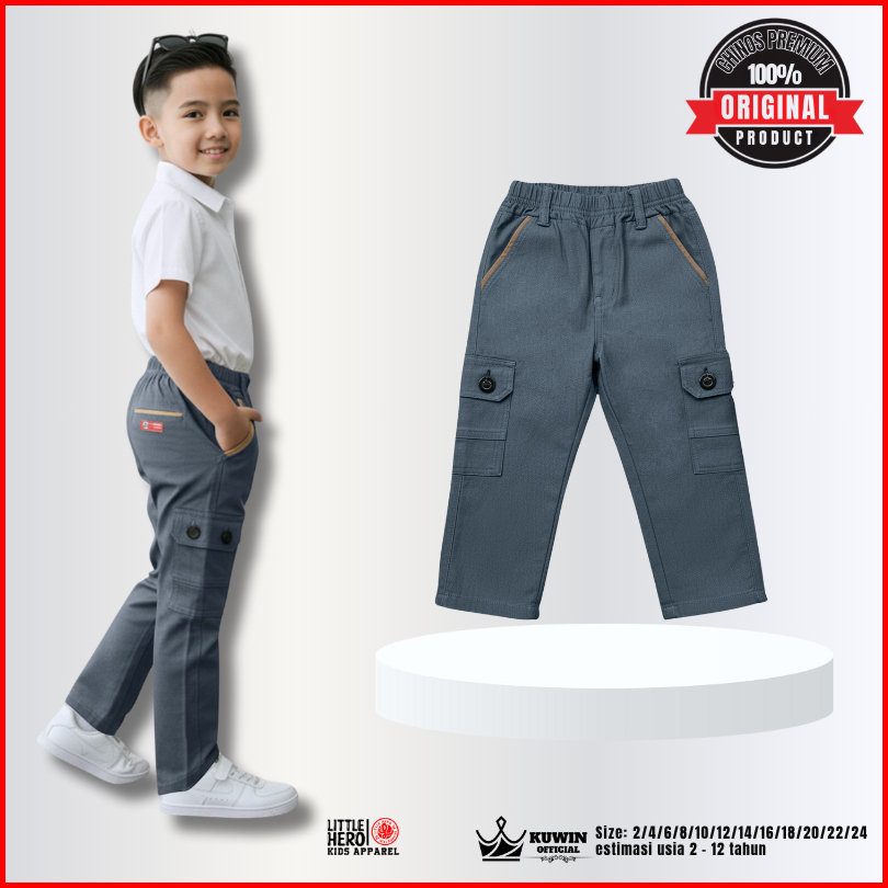 Little Hero Celana Panjang Anak Laki-laki Chino Cargo Casual Usia 2-13 Tahun