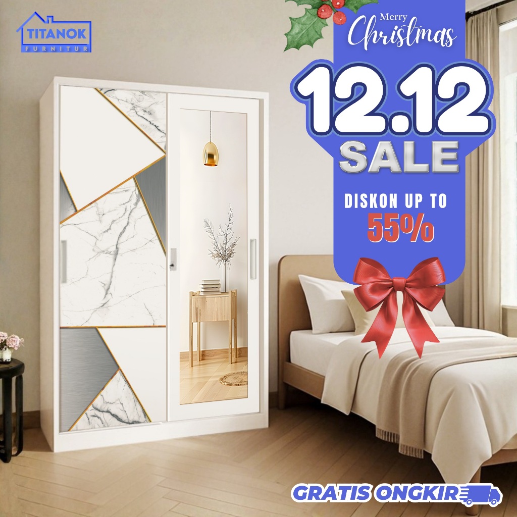 Titanok Official Lemari Pakaian Besi 2 Pintu Sliding Jumbo Panjang - 120cm 2 Batang Rak Baju