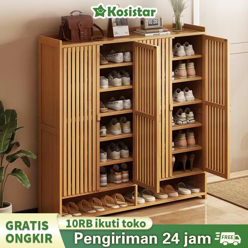 Kosistar Rak Sepatu Aesthetic Lemari Sepatu Susun Tertutup Rak Sepatu Kayu Serbaguna Kabinet Sepatu Bernapas