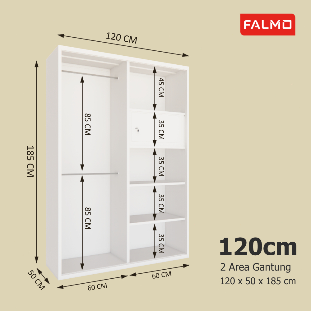 FALMO(PROMO) Lemari Pakaian Besi 2 Pintu Sliding 120cm 2 Batang Rak Baju