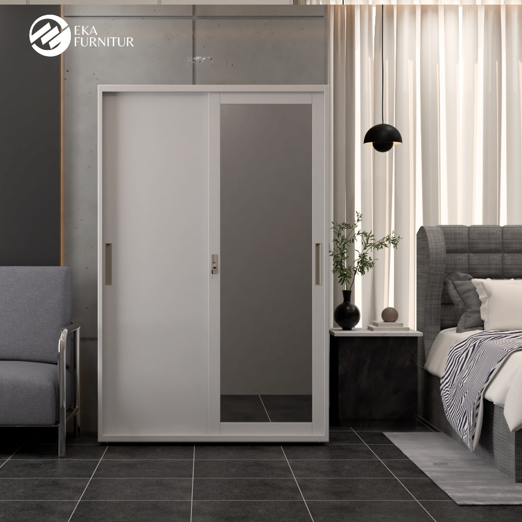 EKA 120cm Lemari Besi Sliding Pakaian 2 Pintu 1 Batang Rak Baju