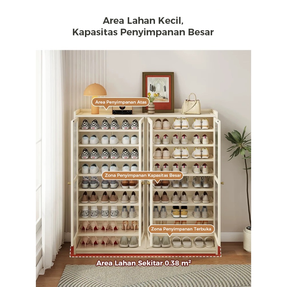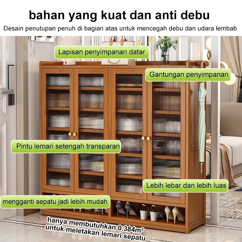 Kosistar Rak Sepatu Bambu Tertutup Minimalis Estetik Kabinet Penyimpanan Sepatu Susun Muat 60 Pasang