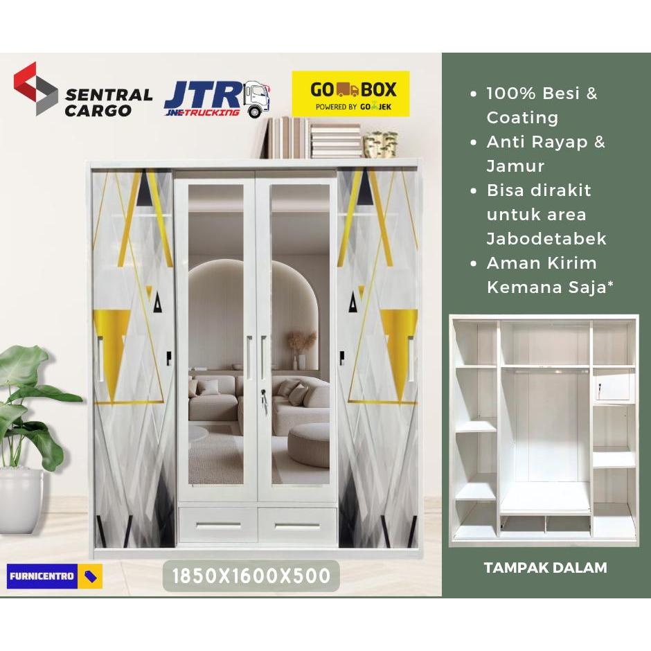 Lemari Pakaian Besi Dewasa Sliding Door Pintu Geser Dengan Kaca Cermin Uk. 185 x 160 x 50