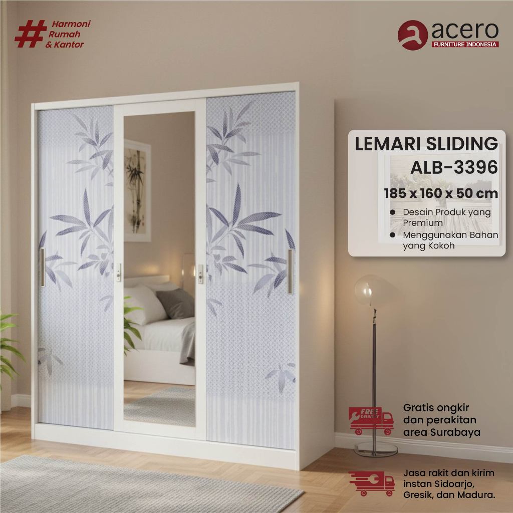 Acero Furniture - Lemari Pakaian / Lemari Baju Sliding 3 Pintu Besi Besar Jumbo Minimalis Full Motif ALB 160cm Series