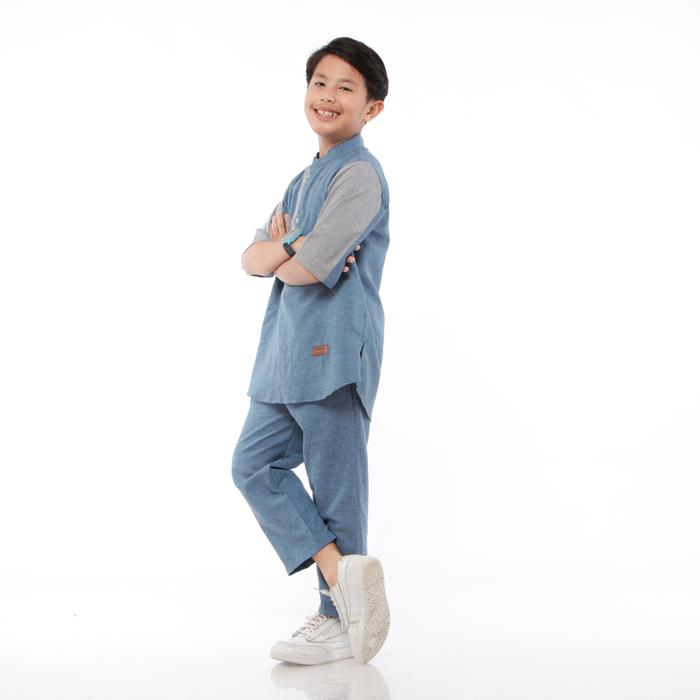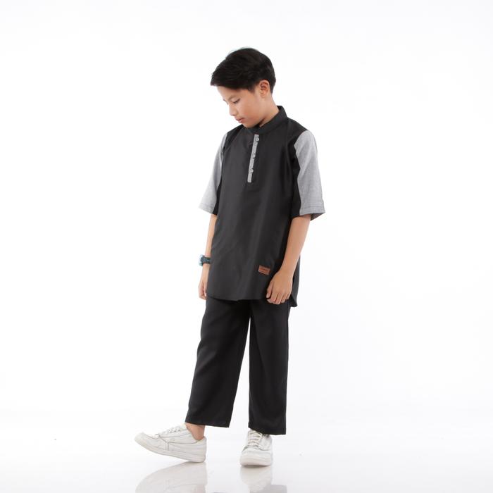 Setelan Koko Kurta Muslim Anak Laki-Laki Lengan 3/4 Usia 5 Sampai 14 Tahun Baju Celana Kain Nyaman Panjang - Ku Hitam, M