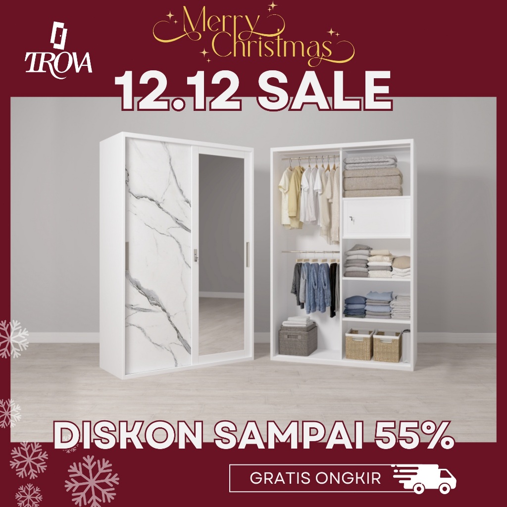 Trova Official Lemari Pakaian Besi Sliding 2 Pintu 2 hanger 120cm - Lemari Pakaian Modern Minimalis