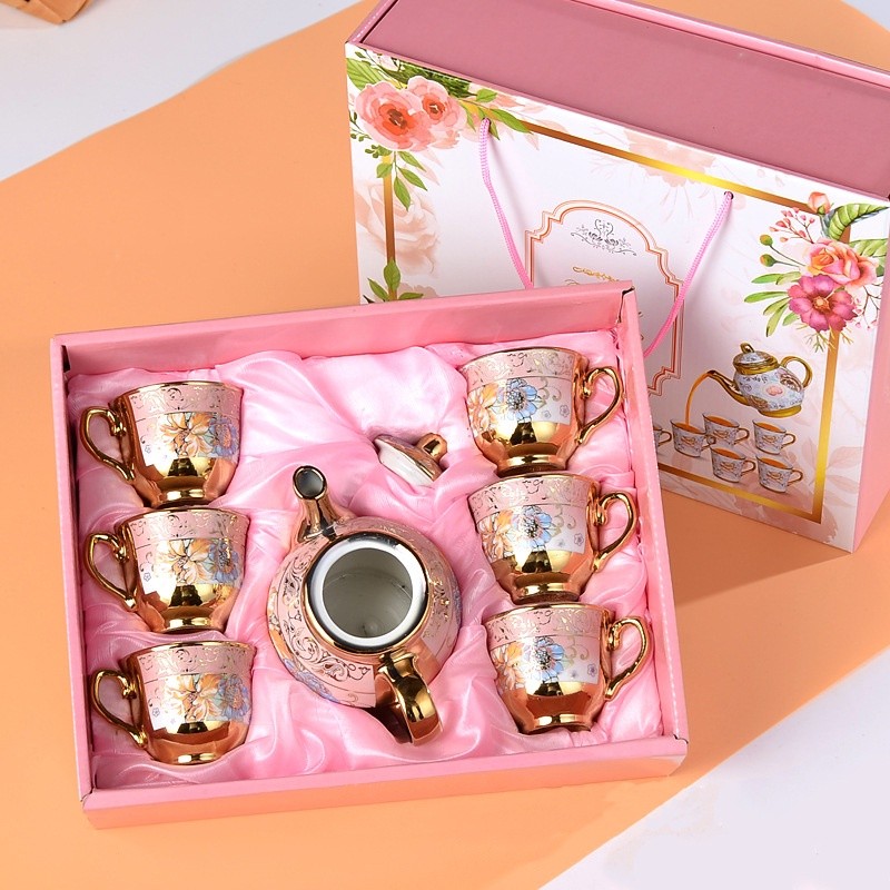 5345 Set Cangkir Teko Teapot Piring Set 5 IN 1 / Parcel Kado Teko Cangkir Teh Keramik / Teko Set Premium Europe Classic Style