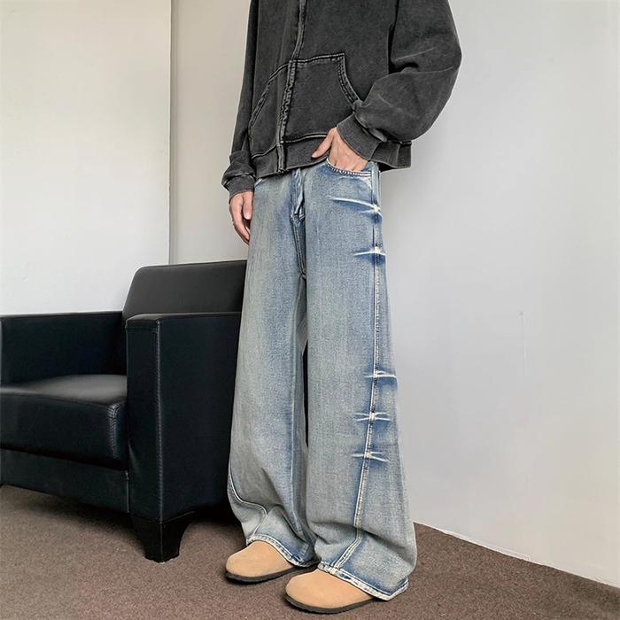 CELANA JEANS PRIA BIRU PANJANG GOMBRONG KOREAN STYLE BAGGY PANTS FASHION DENIM LONGGAR CASUAL JENS - BIRU, M