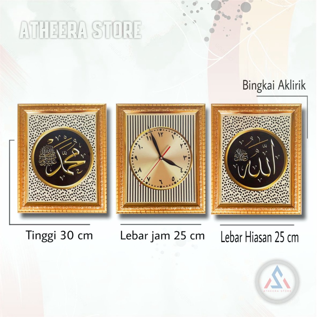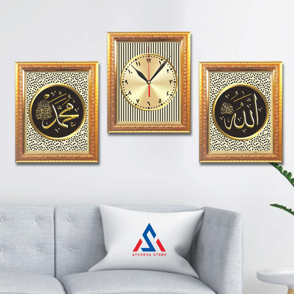Jam Dinding Mewah Bingkai Kaligrafi Gold MDF