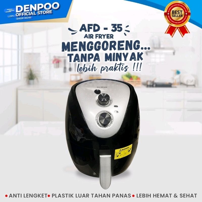 Air Fryer Denpoo Anti Lengket Tahan Panas Kapasitas 3.5L Afd 35