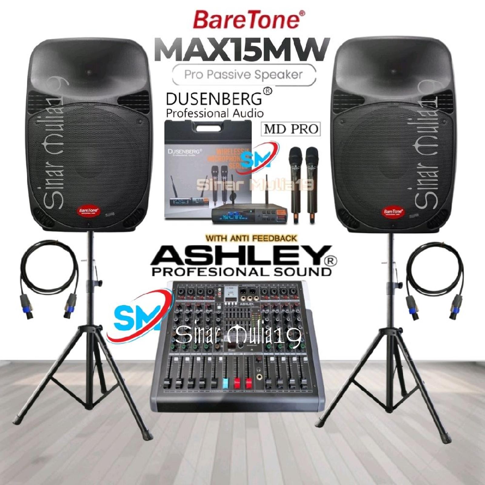Paket Sound System Karaoke Speaker 15 inch BareTone Power Mixer Ashley 10 Channel Bluetooth Mic Wireless