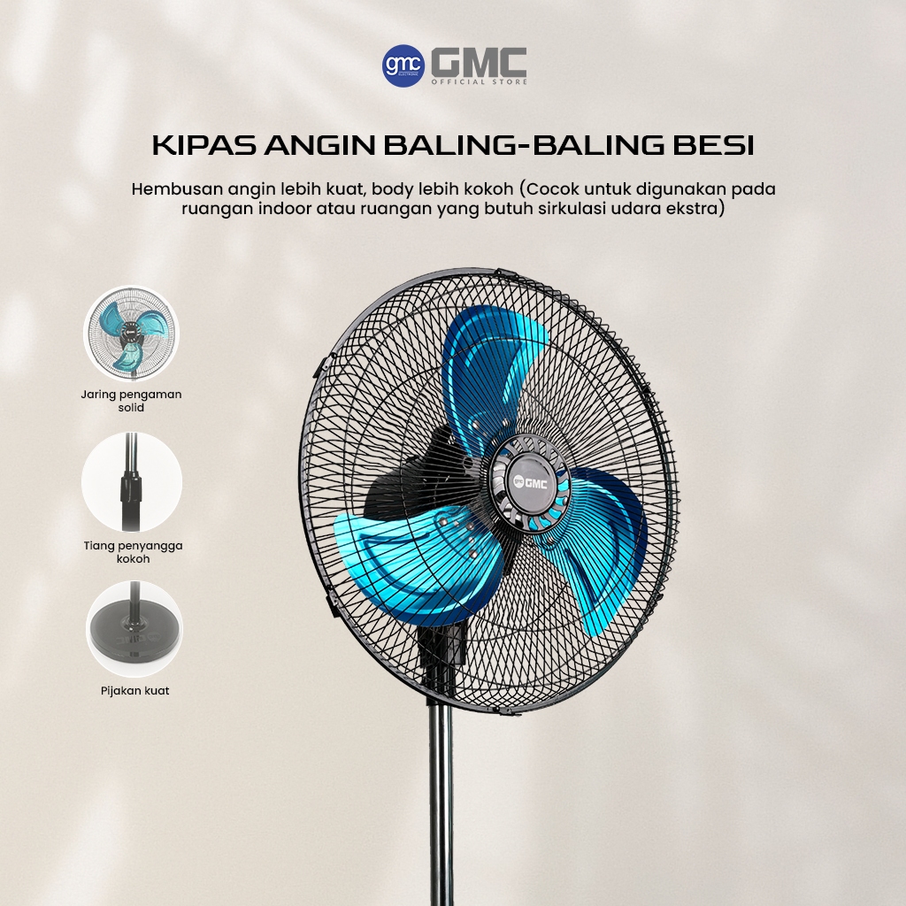 GMC Kipas Angin 318 – Seri Besi – Kipas Lantai 16", 60W, Baling-Baling Besi, Desain Kokoh