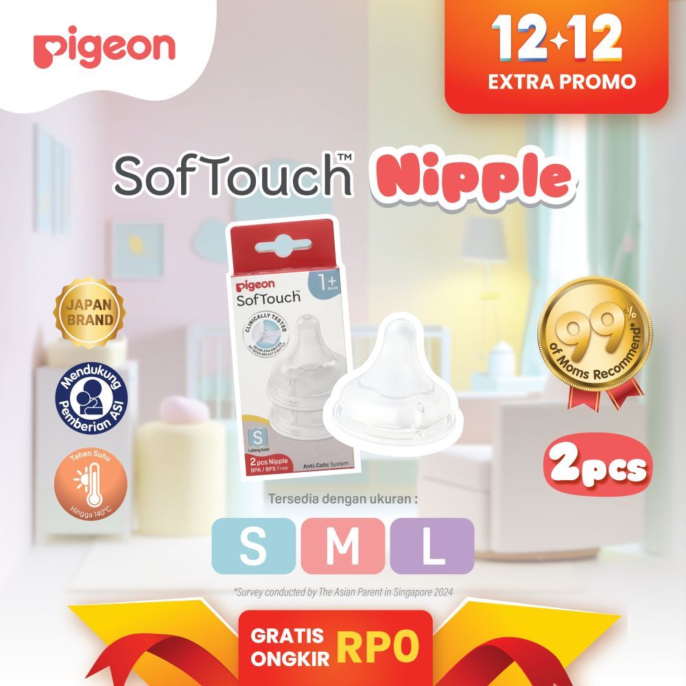[PROMO 12.12] PIGEON SofTouch Nipple Wide Neck - 2pcs Box Original Asli | Pilih Size | Dot Seperti Payudara Ibu | |