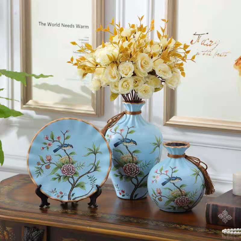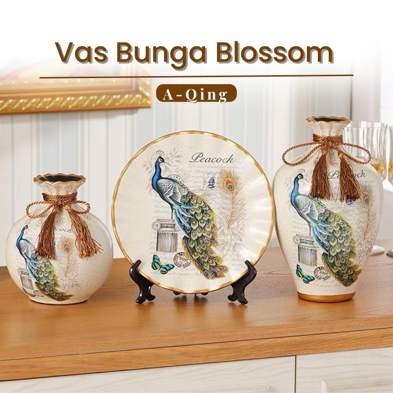 Dekorasi Vas Bunga Blossom Putih Eropa Retro Set 3 PCS/ Pajangan Hiasan 3in1 Decor Klasik