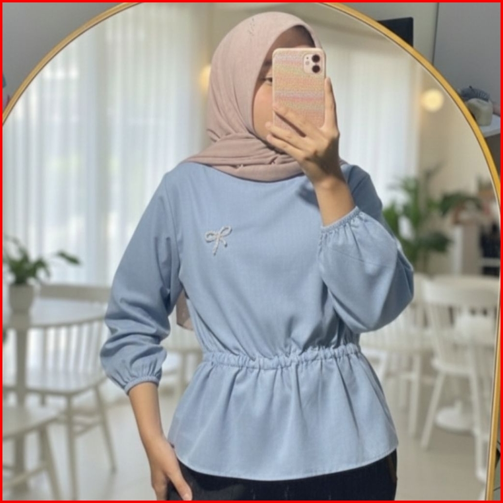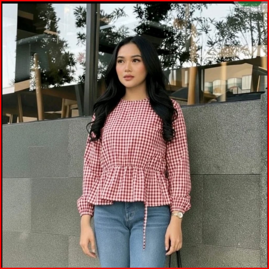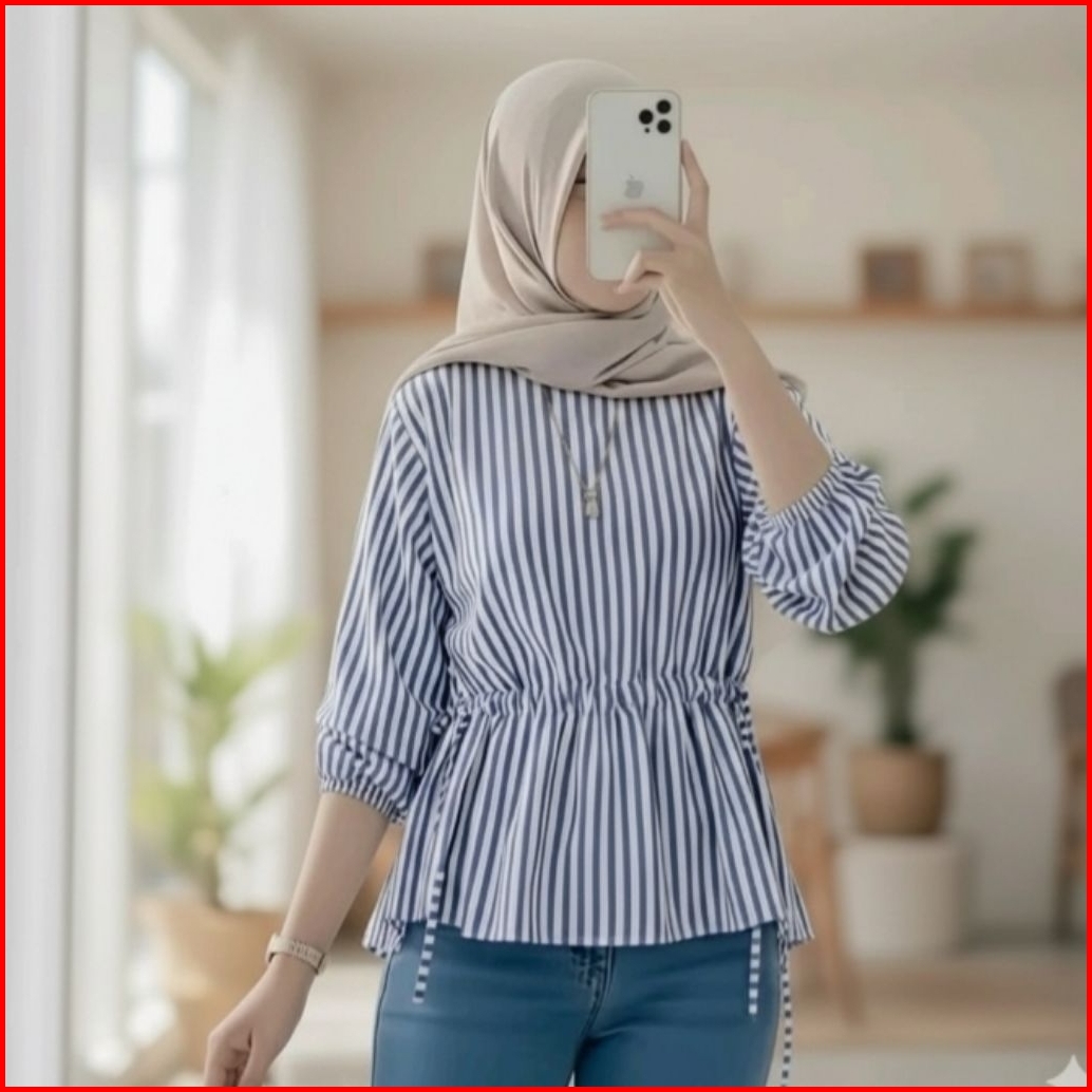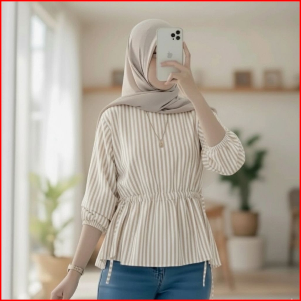 Nowela Blouse Serut Salur-lengan Panjang-blouse Katun-blouse Salur Terbaru