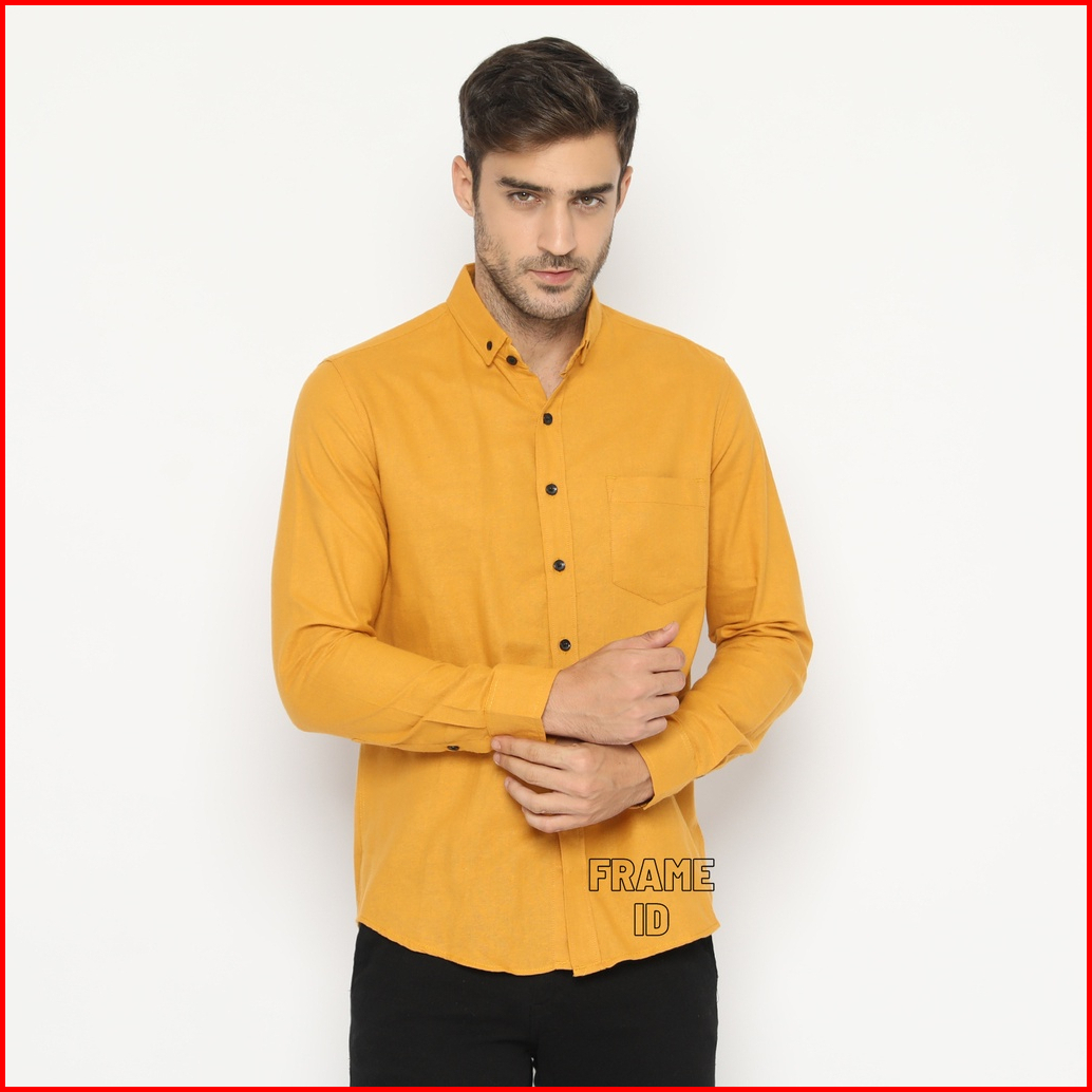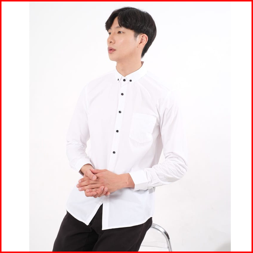 Kemeja Cowok Polos Lengan Panjang Slimfit Hem Pria Pakaian Kerja Kantor Kasual