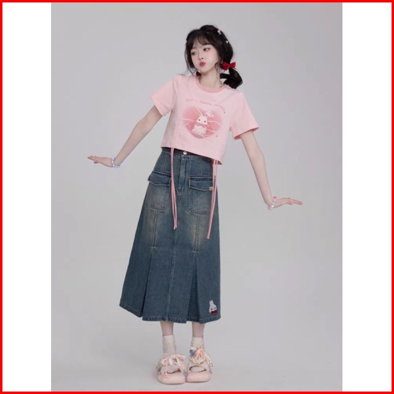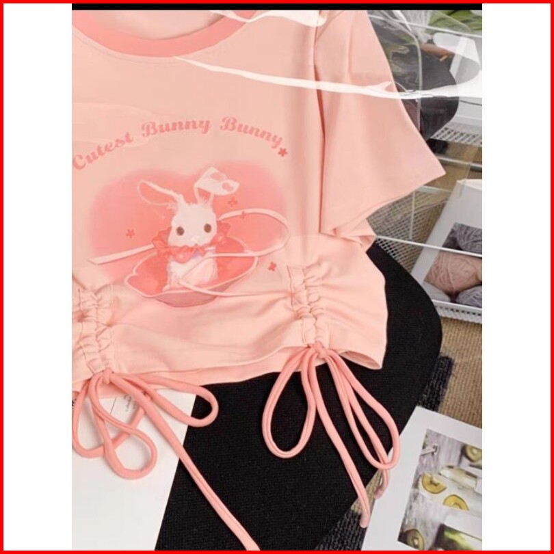 Oblong Blouse Crop Top Anak Perempuan Usia 1 - 14th Kaos Tali Serut Anak Bunny Ribbon