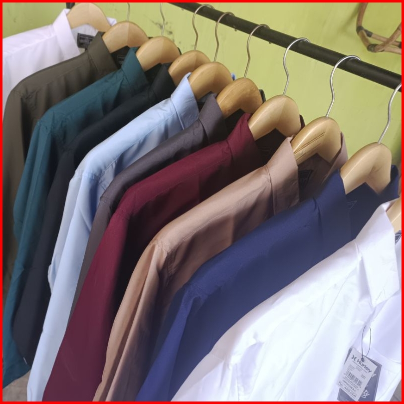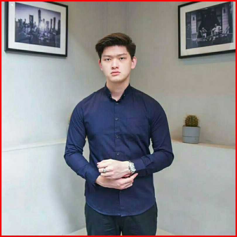 Kemeja Panjang Pria Polos Terbaru Kasual Formal Putih Hitam Biru - Hem Pria Lengan Panjang