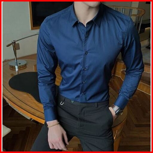 Kemeja Polos Lengan Panjang Warna Solid Bisnis Pria 7 Warna Slim Fit Kasual Katun Pakaian Kantor