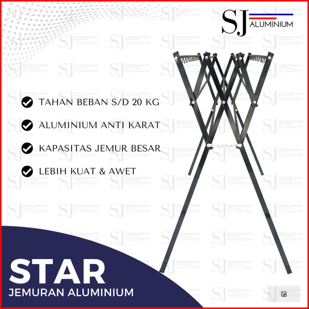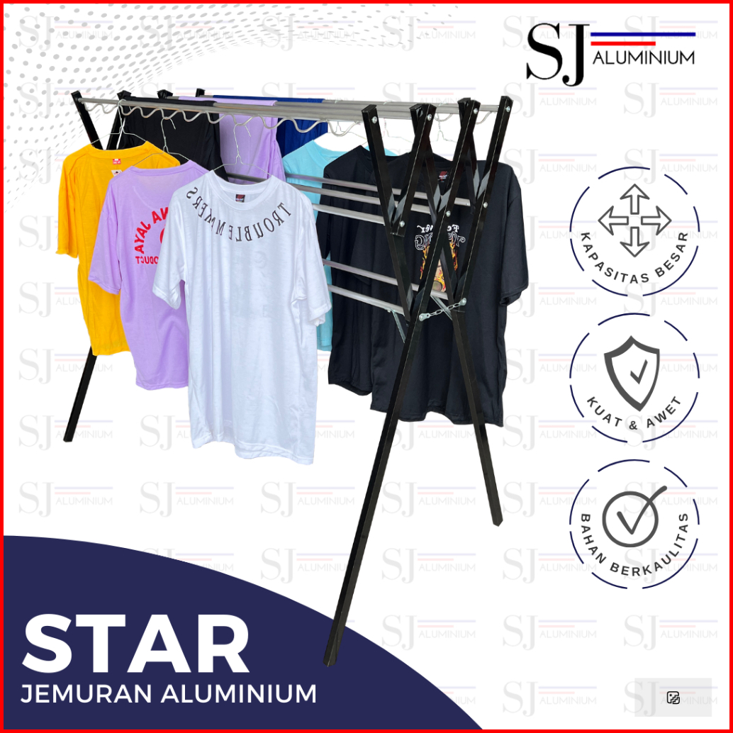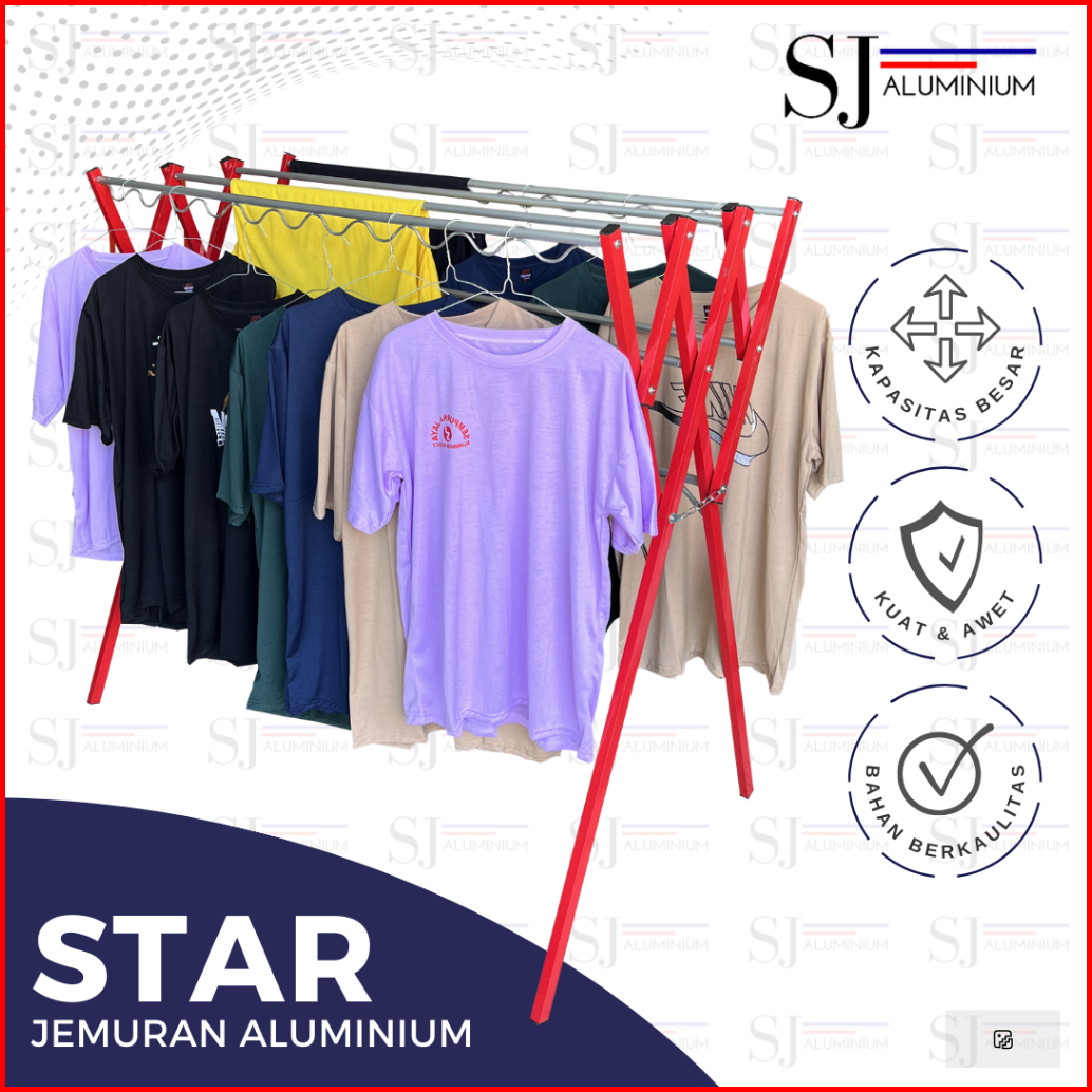 Jemuran Aluminium Star - Jemuran Baju Pakaian Rak Handuk - Jemuran Lipat - Kuat Tahan 20 Kg - Ukuran 135 Cm Warna