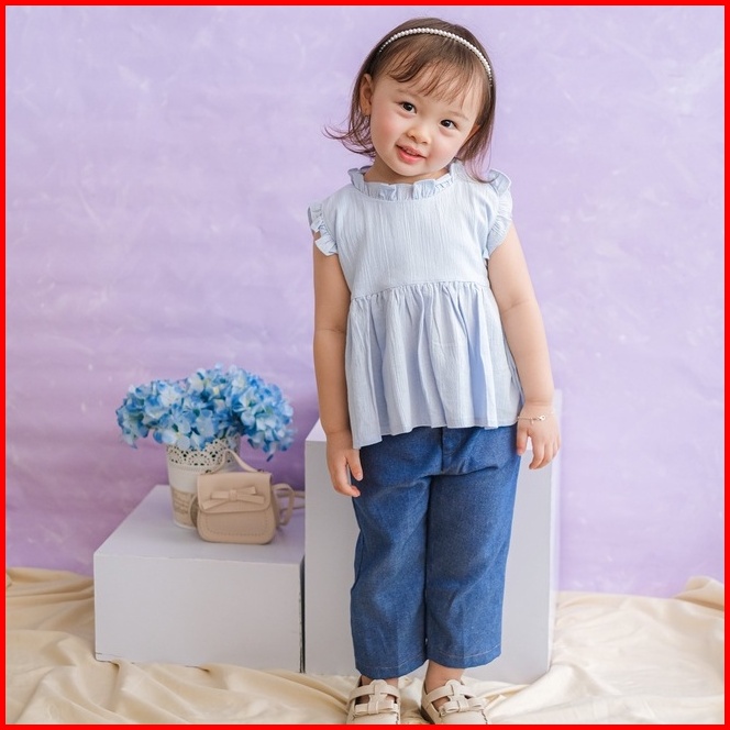 Kiddiepods - Olive Top Baju Anak Perempuan Blouse Anak Perempuan Atasan Anak Perempuan 1-10 Tahun