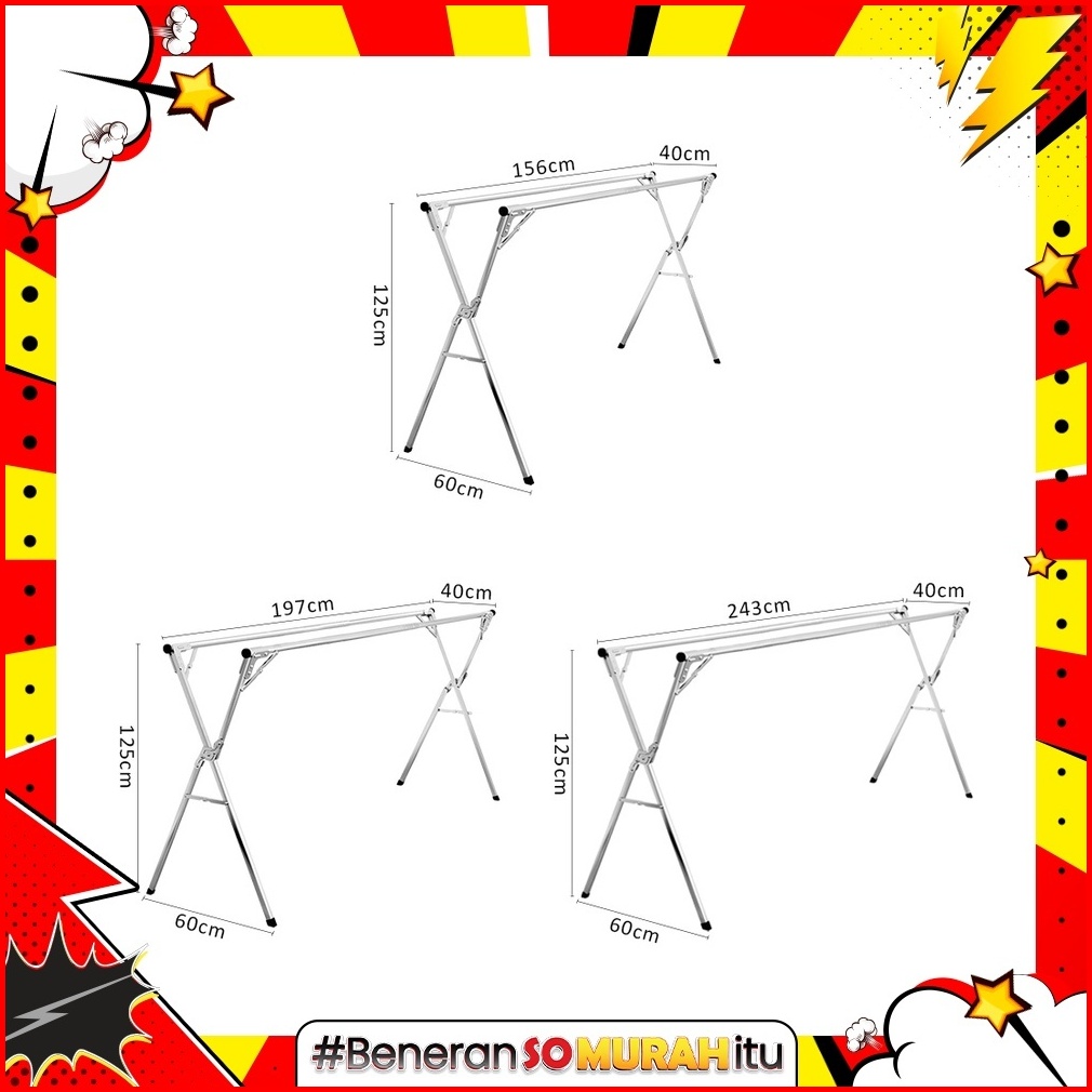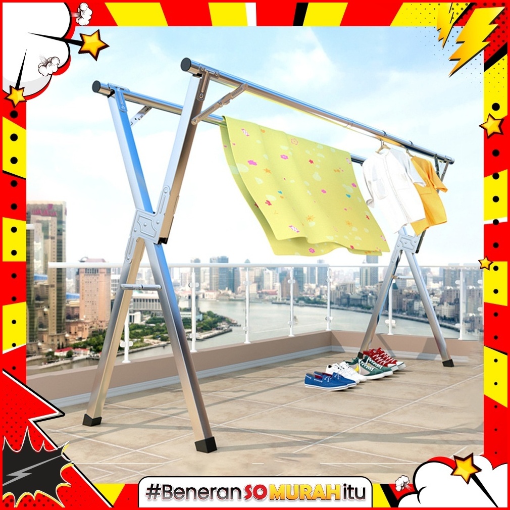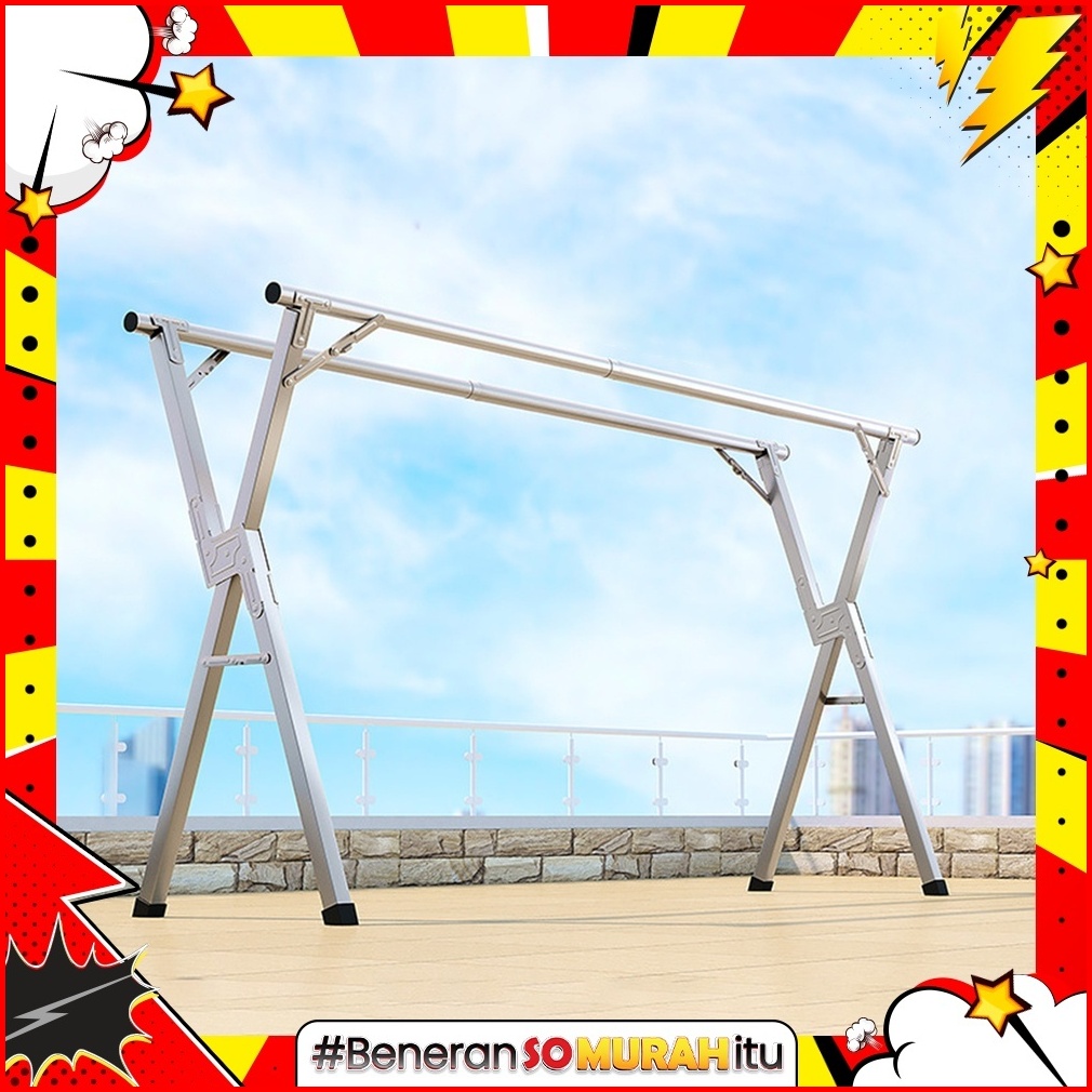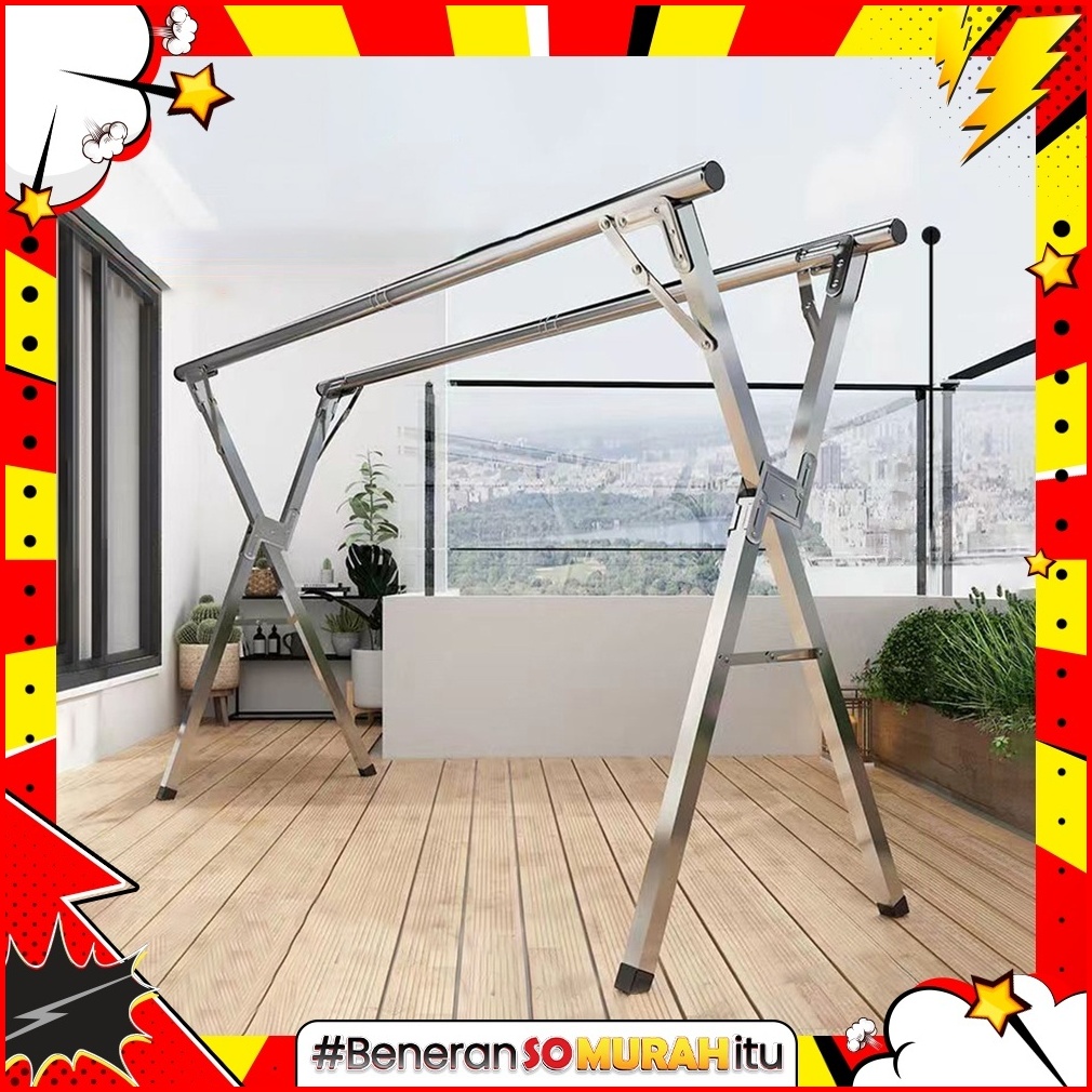 Jemuran Baju Lipat Outin Gantungan Baju Panjang Laundry Stainless Steel Portable Merek Kotakin