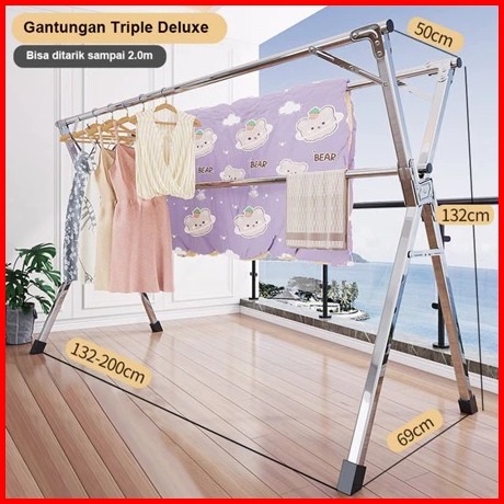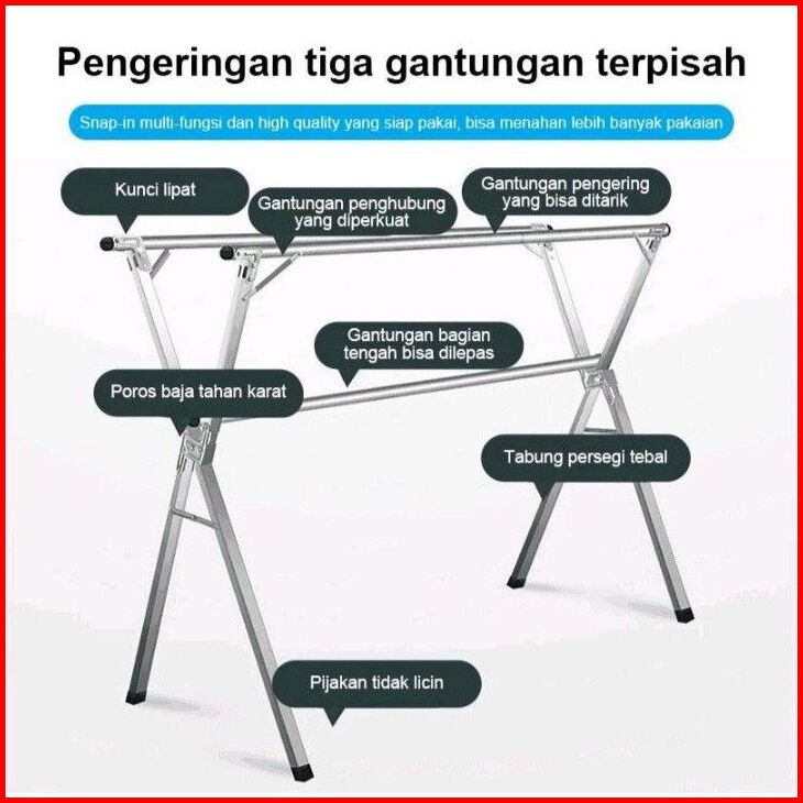 Rak Baju Lipat Stainless Steel Portable Tidak Diperlukan Instalasi Jemuran Baju Stainless Steel