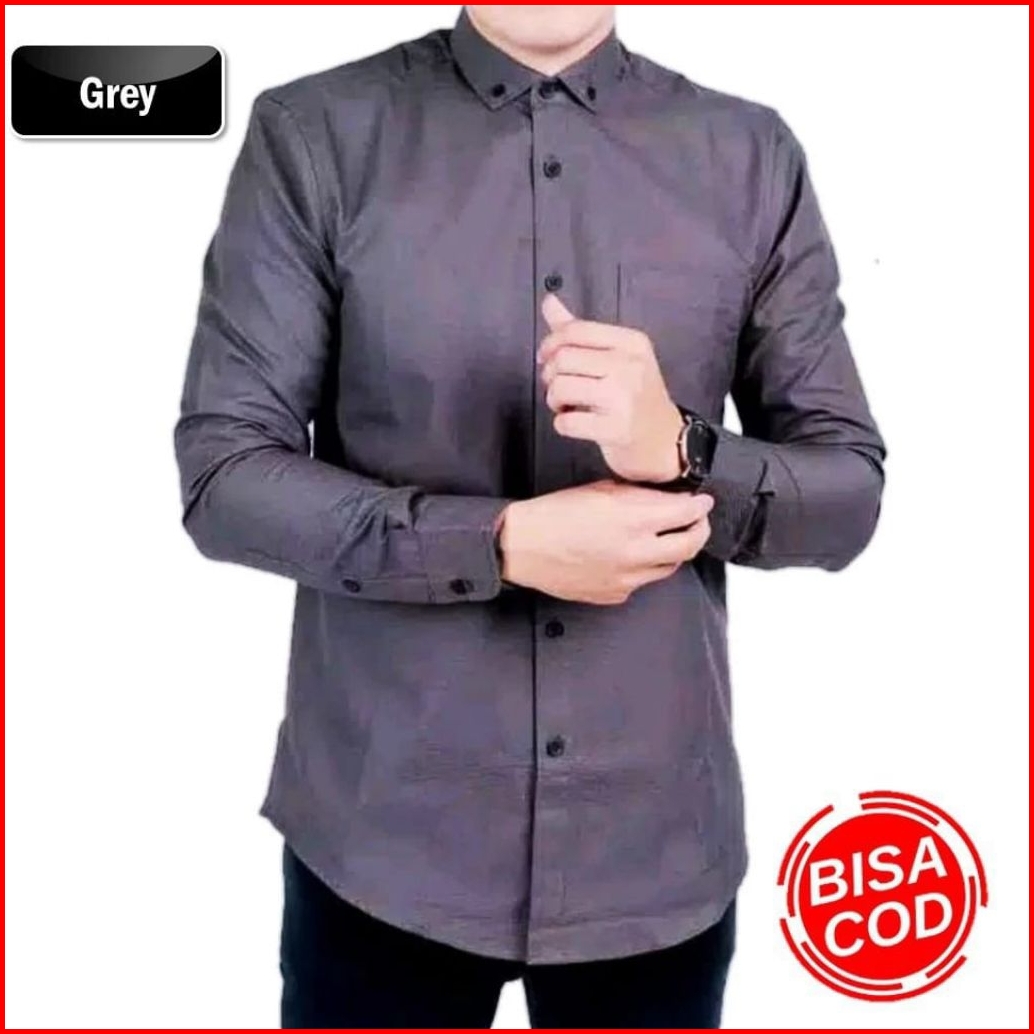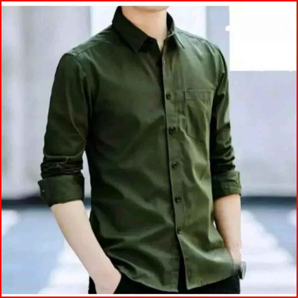Kemeja Polos Lengan Panjang Pria Katun Slimfit