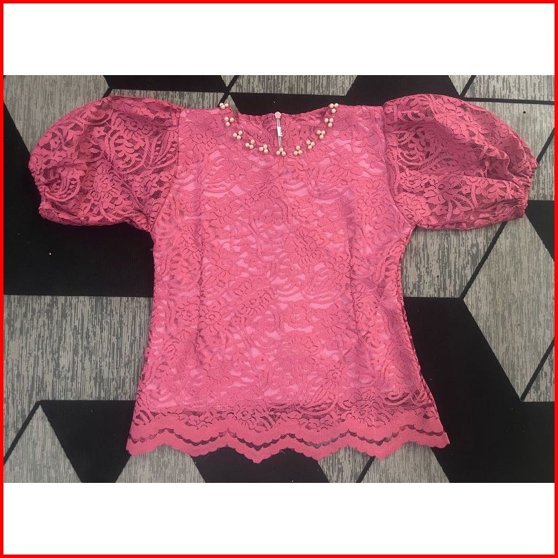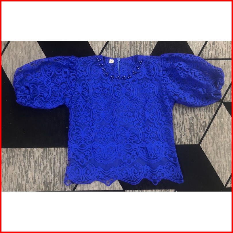 Blouse Kebaya Anak Perempuan Usia 3-10 Tahun Model Lengan Balon Leher Bulat Payet Mutiara Cantik Viral
