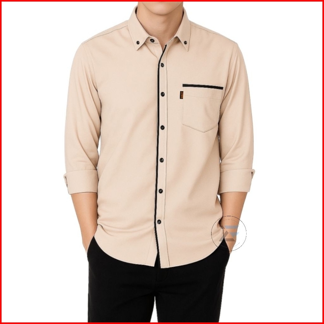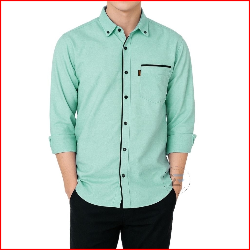 Kemeja Polos Pria Lengan Panjang Motif List Biru Muda Oxford Size M L Xl