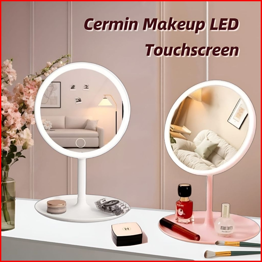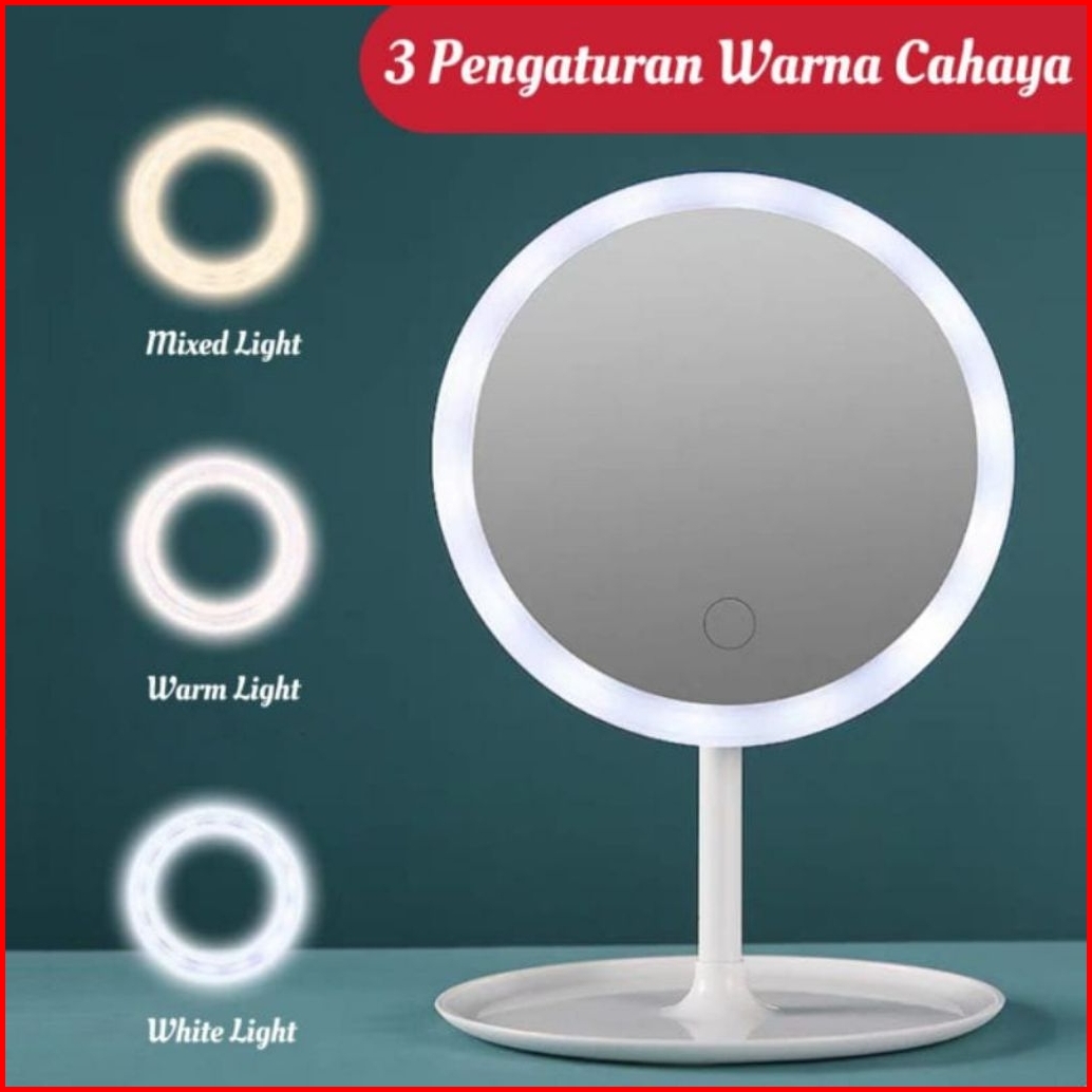 Cermin Makeup Mirror Led Light Tombol Touch Screen Aesthetics Portable Design Cermin Makeup 3 Warna Lampu Bisa Diputar 9