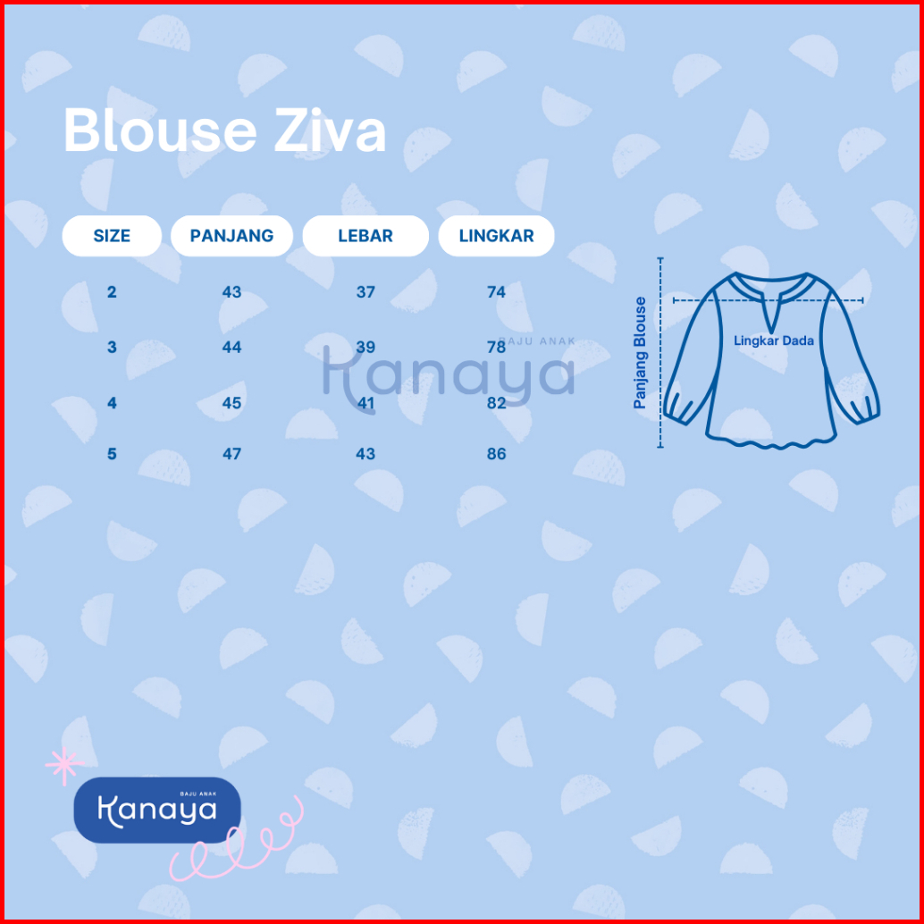 Blouse Ziva Atasan Anak Perempuan Bahan Katun Rayon 2-5 Tahun