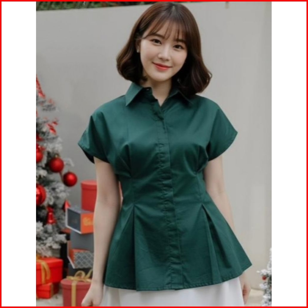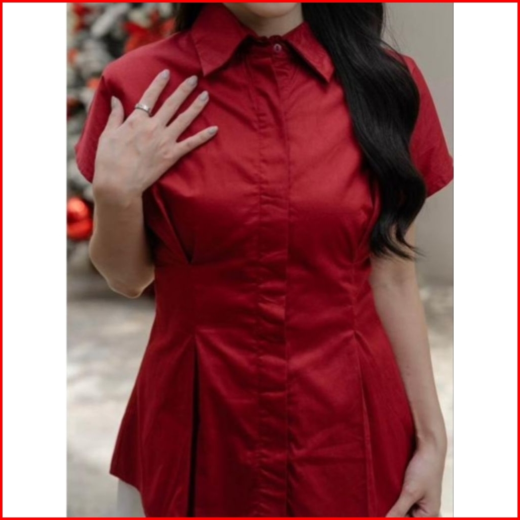 Bestgirl New Kemeja Blouse Batwing Katun Poplin Tali Belakang Kemeja Basic Atasan Natal Imlek Cny