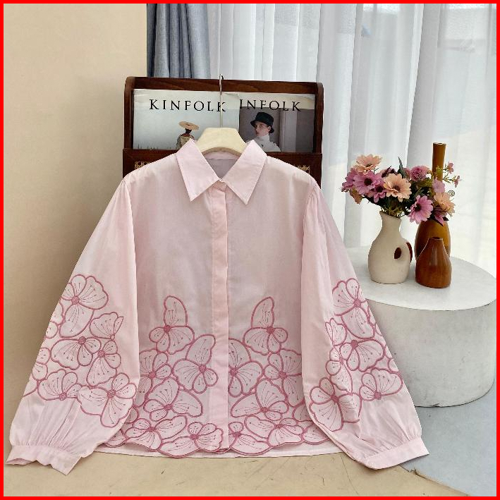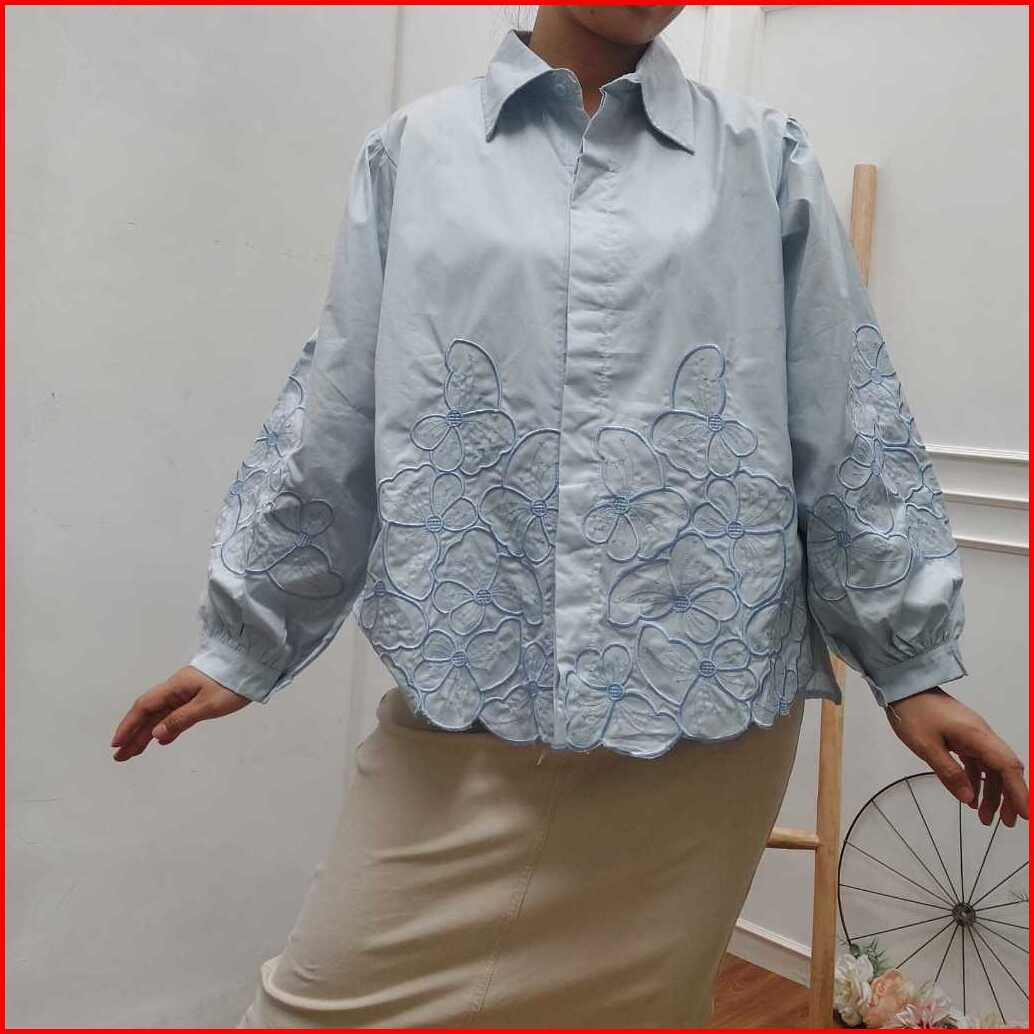 Be.gracious-noona Blouse Blouse Bordir Bunga Blouse Wanita Kekinian
