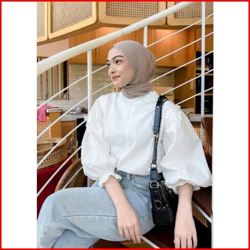 Moni Blouse Katun Linen - Blouse Puffy Lengan Balon - Atasan Wanita Korean Style