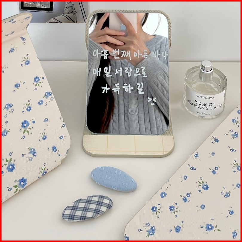 Cermin Lipat Gaya Retro Motif Small Flower Korean Folding Mirror Aesthetic Cermin Rias Travel Portable Dekorasi Rumah Vi