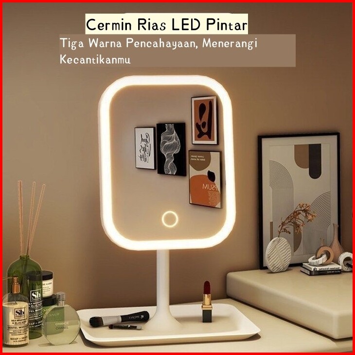 Ready Cermin Rias Led Dengan Pencahayaan Tiga Warna Cermin Pintar Dengan Lampu Dapat Diatur Untuk Kamar Kos Dan Meja Bel