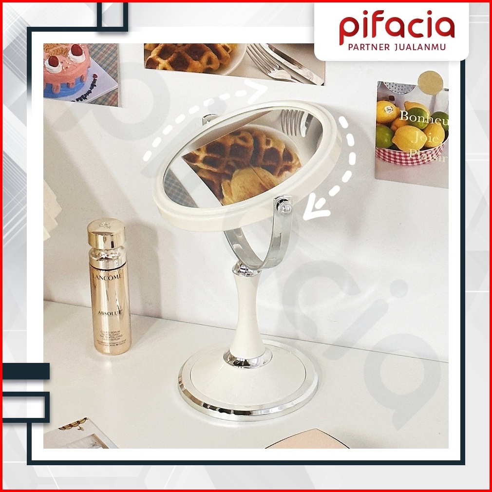 Pifacia Cermin Makeup Dua Sisi Normal Dan Zoom Standing Mirror Putar 360 Kaca Rias Dual Fungsi Estetik