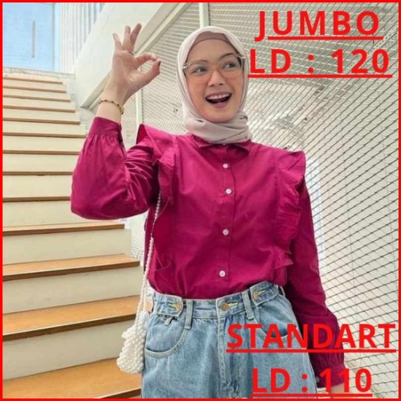 Blouse Wanita Oversize Kemeja Wanita Bigsize Kemeja Rempel Ld 120