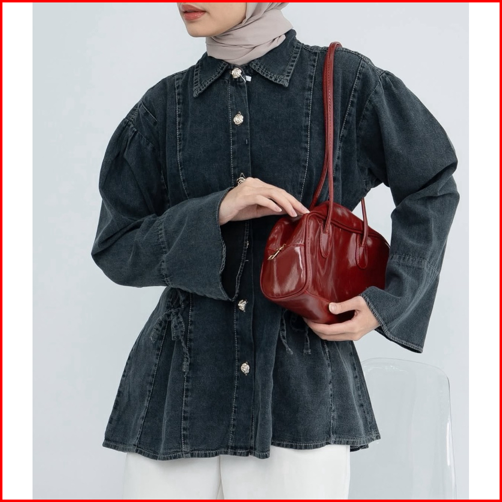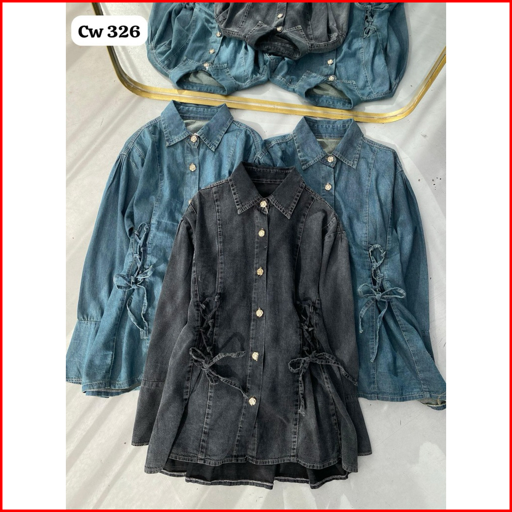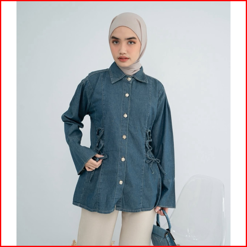 Atasan Kemeja Denim Jeans Washing Wanita Premium