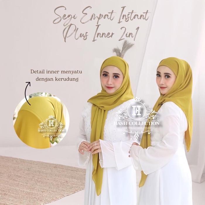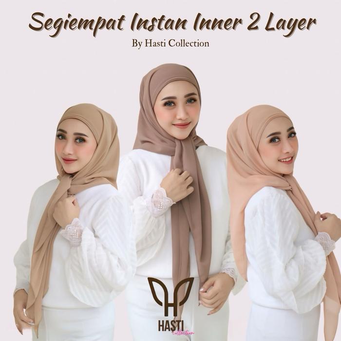 Hasti - Hijab Segi Empat Instan Inner 2 Layer Ceruty Babydoll Kerudung Segitiga - Paket Bundling 3Pcs Tulis Warna Di Ca