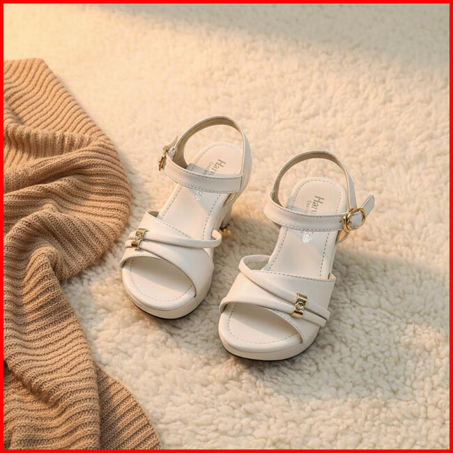 Quds Kids - Sandal Pesta Anak Perempuan Putih Pilihan Hadiah Model Hak Heels 5cm Tali Permata