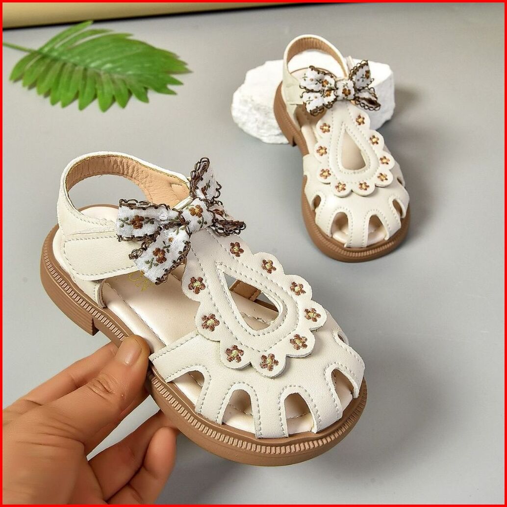 Loli-jkt Sd 528 Sandal Sepatu Anak Cewek Motif Bunga Bordir Pita Tali Perekat Size 23-36